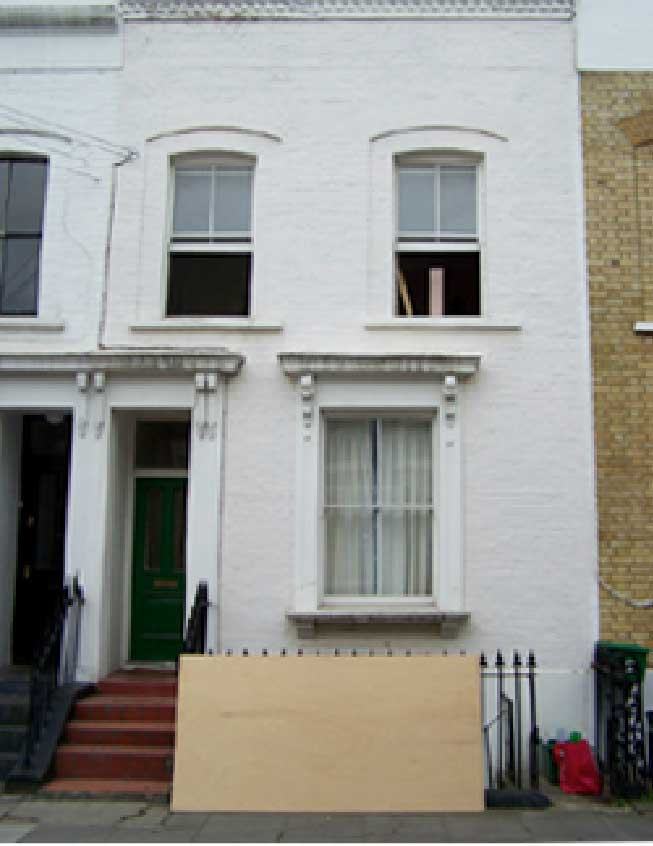 Back to paint removalAfter paint removal from this mid Victorian house in Bow London, the brickwork was pointed in a RIBBON point. NOTE: The parapet has been rebuilt at some stage on this building possibly due to bomb damage. It would have had a cornice mould in stucco when first built like the other parts of the terrace.